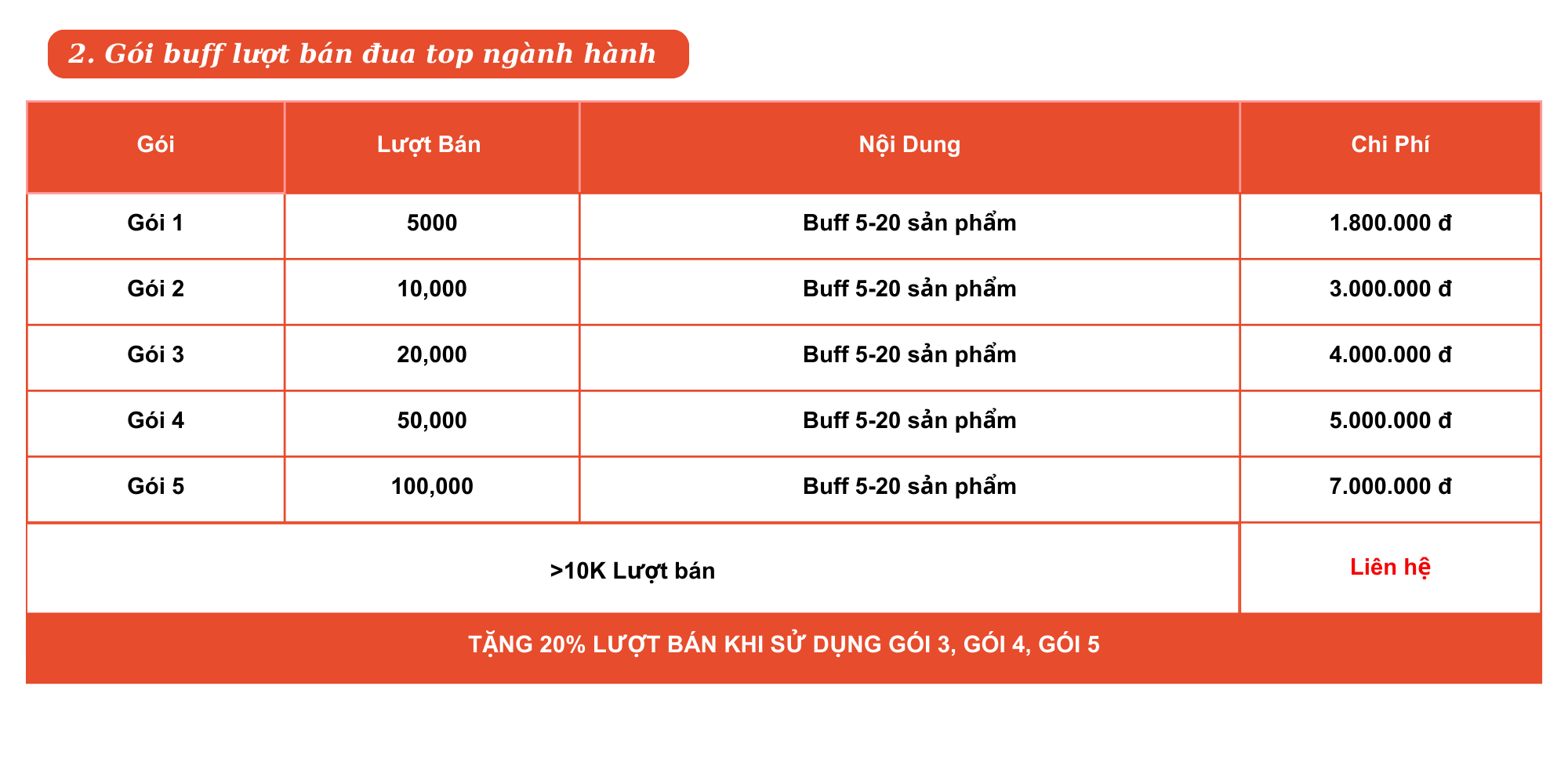 - Tăng lượt bán : 800 lượt bán (Tối đa 20 sp)
