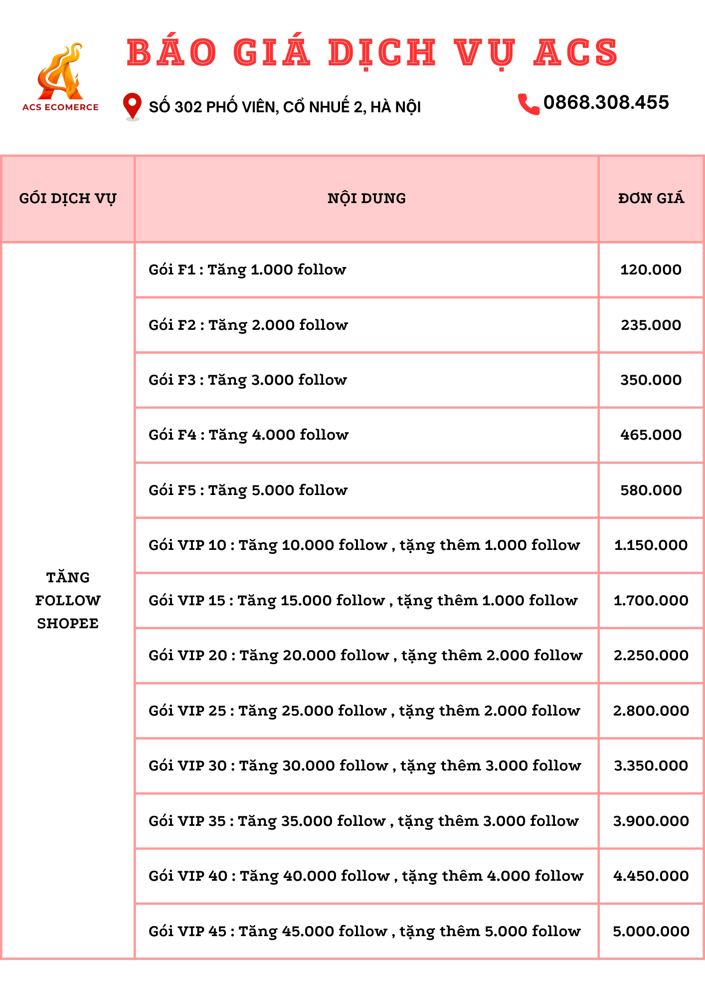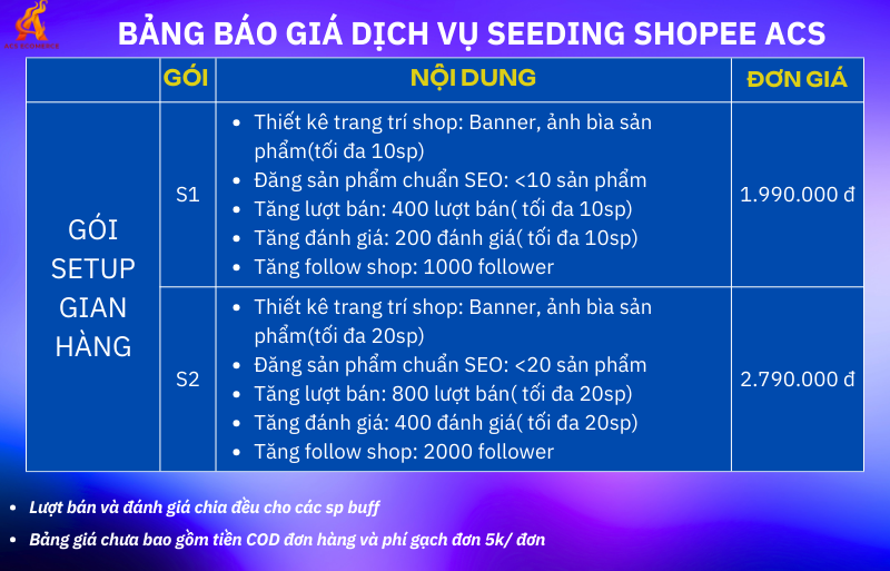 BẢNG GIÁ SHOPEE ACS GROUP